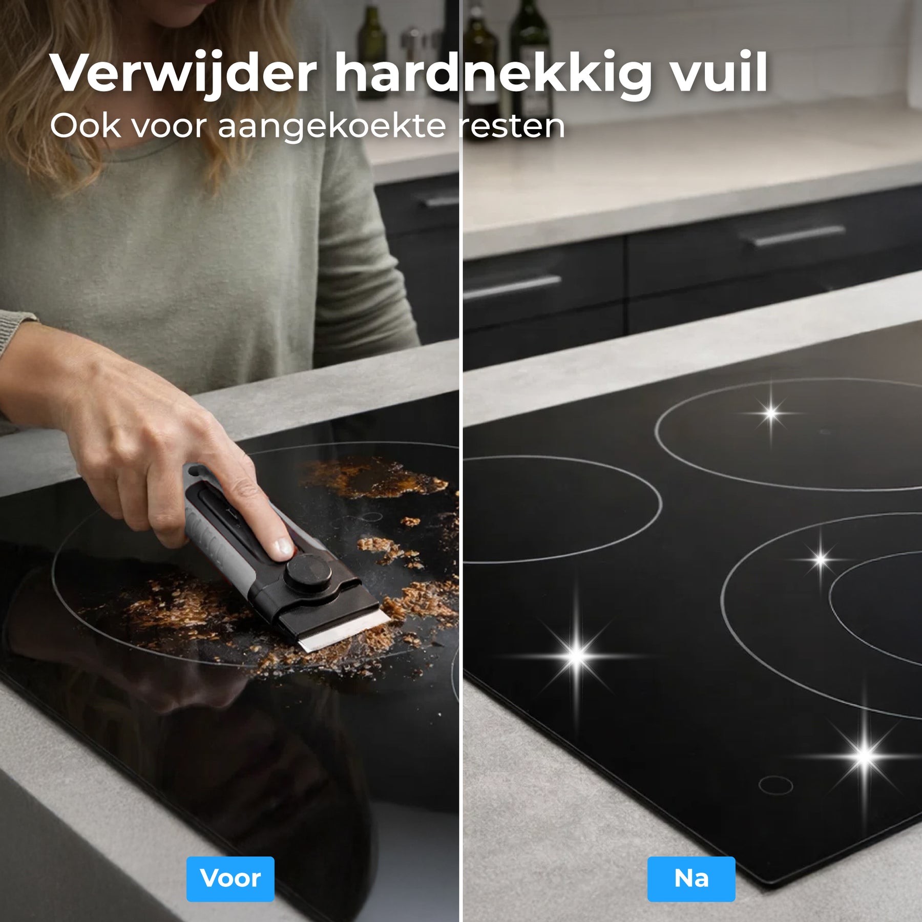 Een slimme combinatie van comfort, veiligheid en direct resultaat. Ontdek hoe eenvoudig schoonmaken kan zijn en voeg de glasschraper toe aan de schoonmaakroutine van je kookplaat.